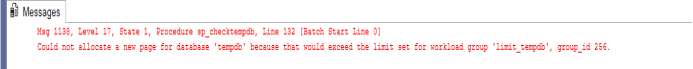 Could not allocate a new page for database ‘tempdb’ because that would exceed the limit set for workload group ‘limit_tempdb’, group_id 256